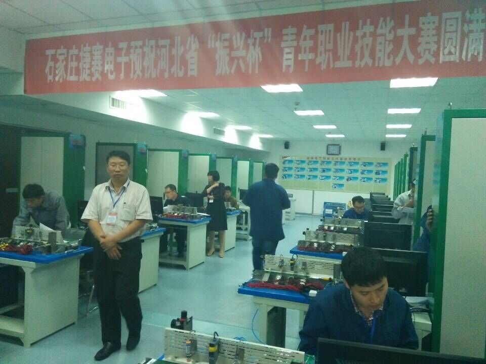 河北省“振興杯”青年職業技能大賽使用本公司生產的PLC實訓裝置、物料分揀實訓裝置、電工技能實訓考核裝置等產品。