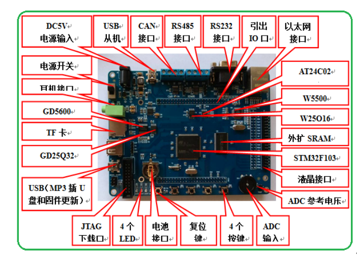 11)?1個RS485接口;1個RS232接口;1個CAN接口;1個TF卡接口:播放TF卡音頻文件;1個USB Device接口;1個3.5mm耳機輸出接口;